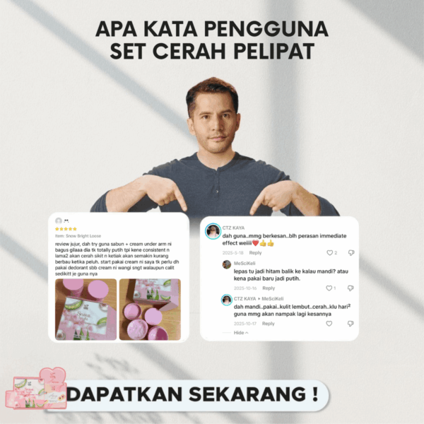 99% Pengguna Set Cerah Pelipat akui memang Berbeza dengan Produk Lain!! dan kesan Pencerahan dan Flawless Serta-Merta!!